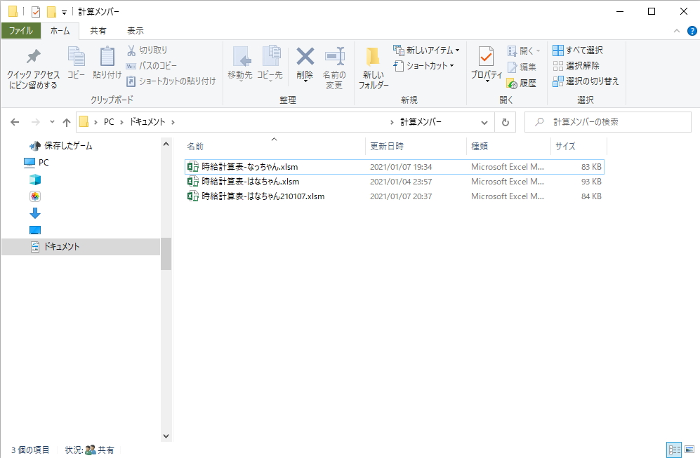 この「時給計算表.xlsm」は、テンプレートファイルという位置づけになっています。